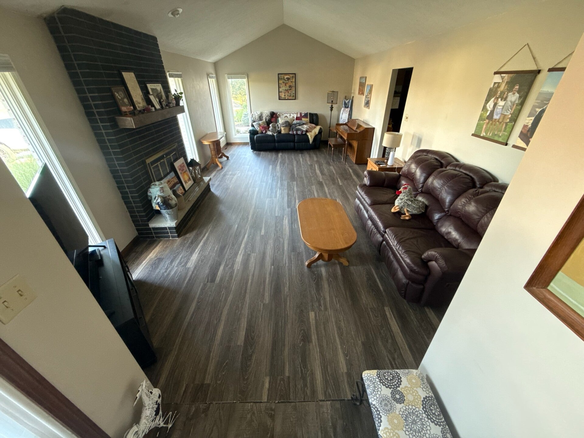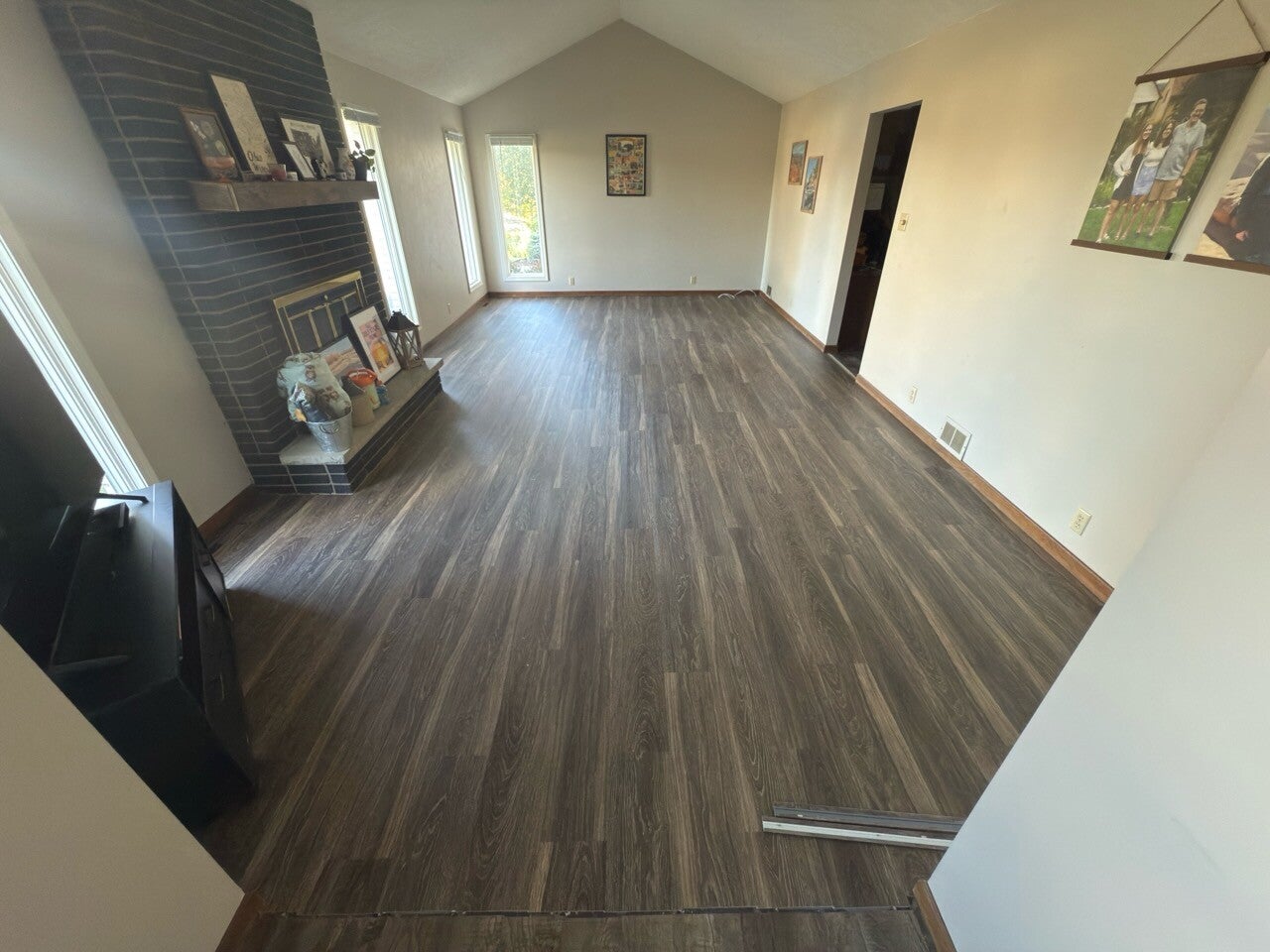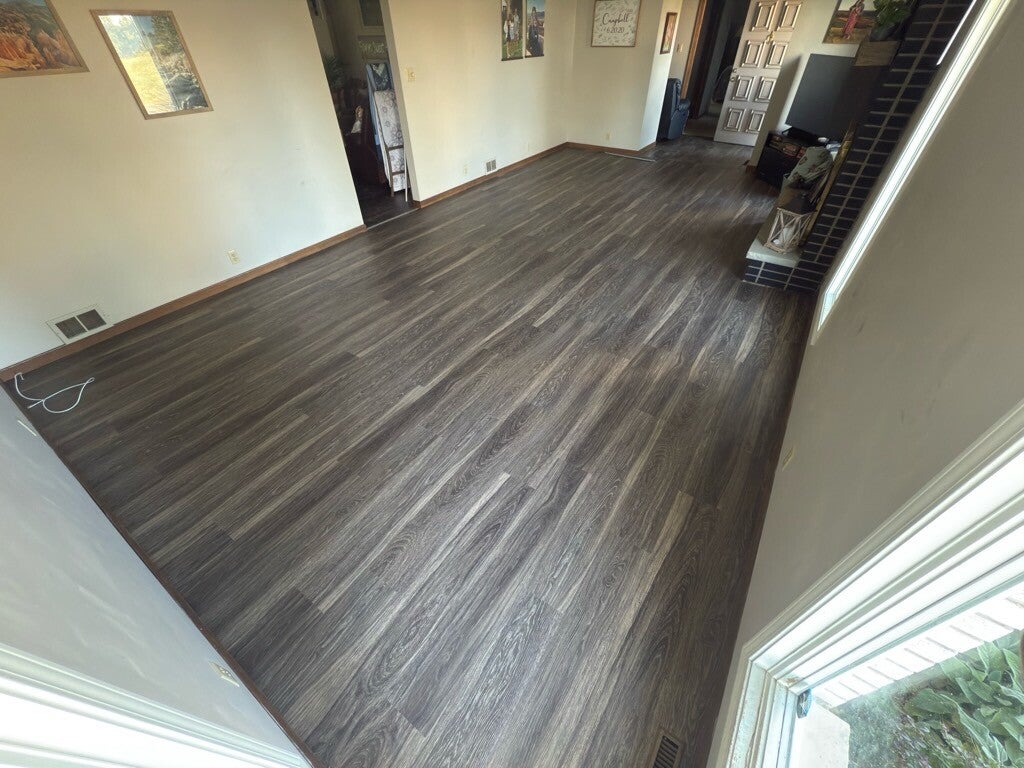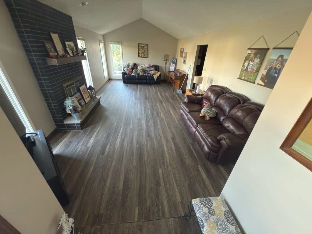 Here’s a recent vinyl plank flooring job we finished this summer. We removed the old flooring, repaired the subfloor, and installed brand-new vinyl plank with clean cuts, tight seams, and smooth transitions. The results completely modernized the space.